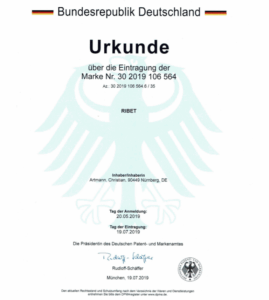 Urkunde über die Eintragung der Marke RIBET®